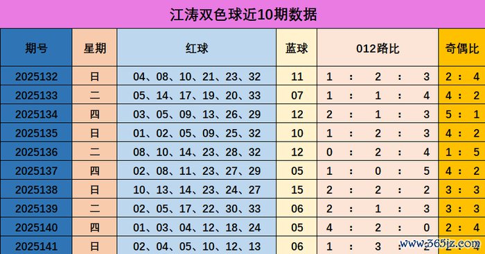 双色球第20250141期开奖:本期开奖号02,04,05,10,12,13,蓝球号码06。当期红球号码012路比1:3:2,奇偶比为2:4